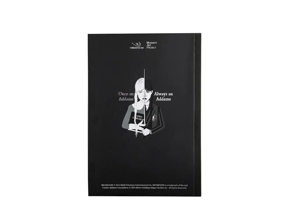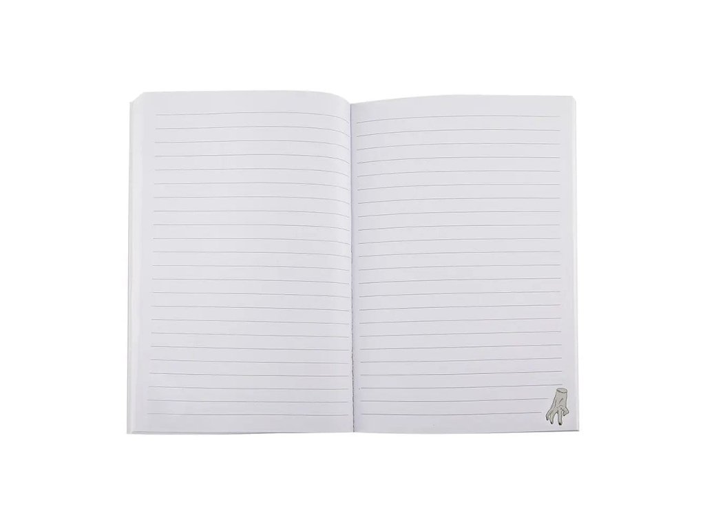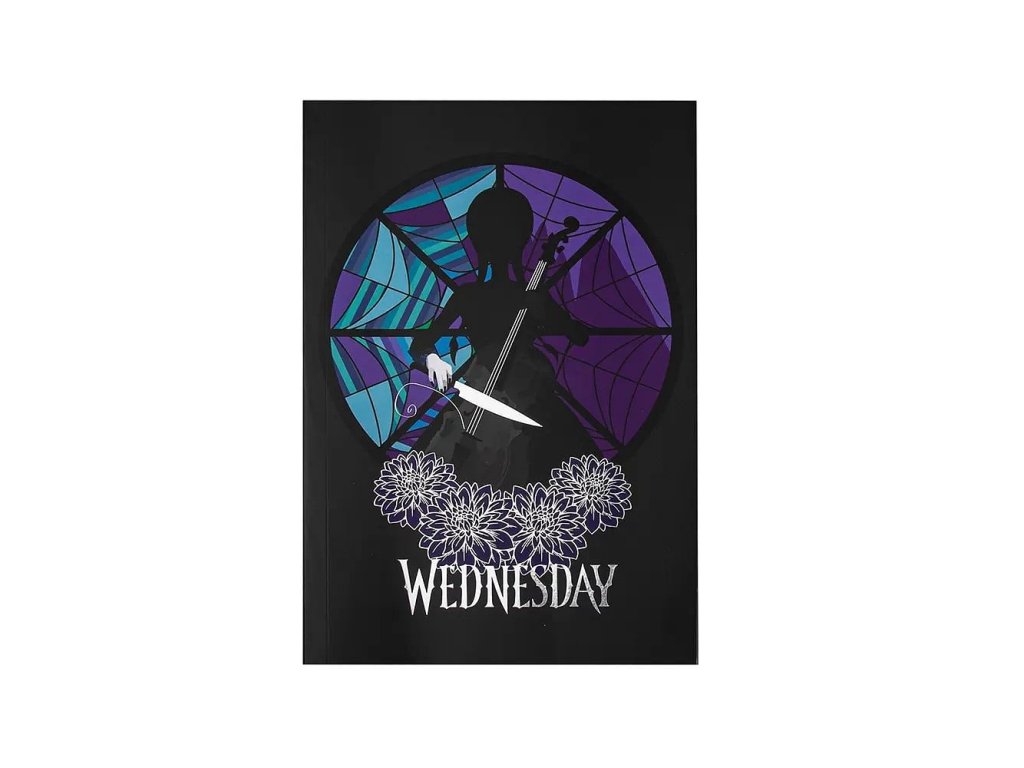 Zápisník v měké vazbě s Wednesday a jejím violončelem na deskách bude skvělým společníkem pro nápady a poznámky fanoušků komediálního hororového seriálu. Zápisník je linkovaný.