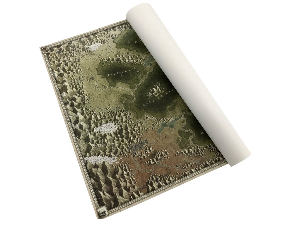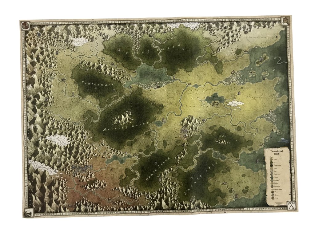 Luxusní velkoformátové zpracování mapy Zapovězených zemí tištěné přímo na plátně. Mapa je vhodná ke hraní nebo jako dekorace k pověšení. Rozměr plátna 72 x 52 cm. Odkazy Více o Zapovězených zemích Facebook Discord Rpgforum D20