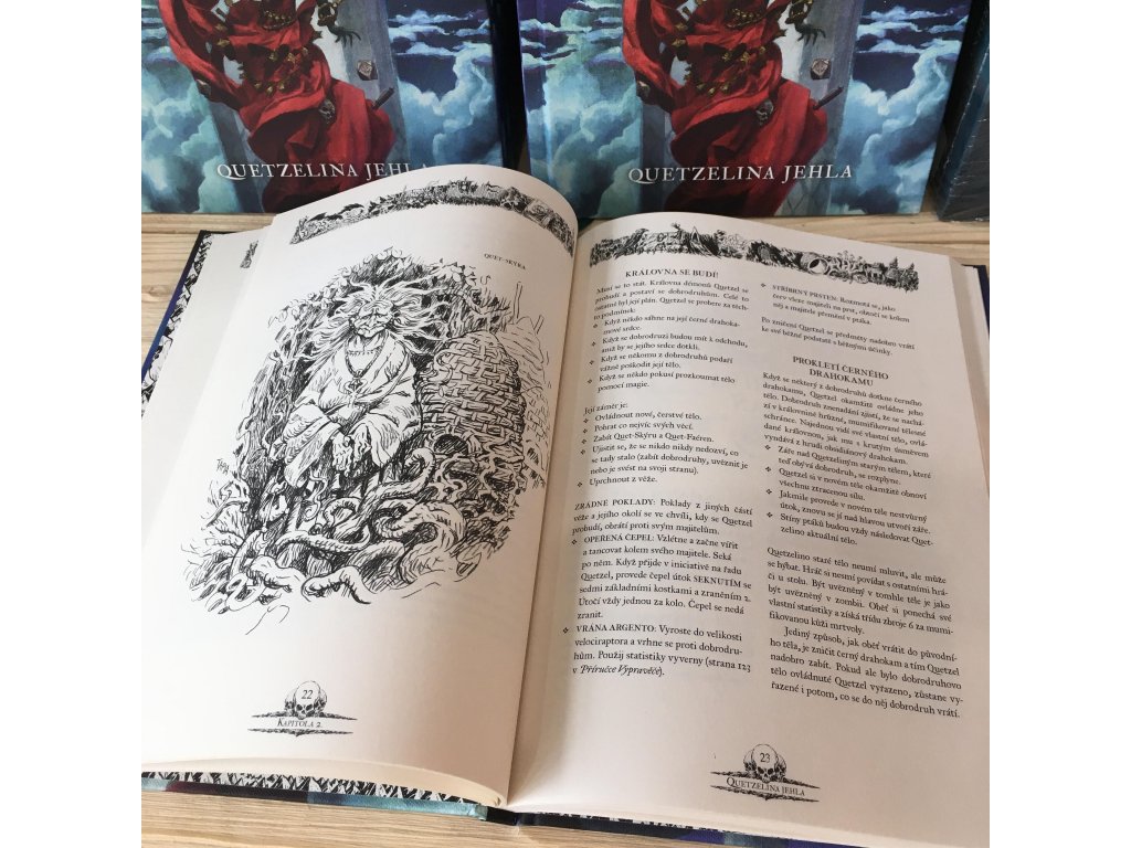 Quetzelina jehla je sborník čtyř dobrodružných míst v žánru sword & sorcery pro stolní fantasy hru na hrdiny Zapovězené země, napsaných vyhlášenými autory z OSR neboli oldschoolové scény. Na stránkách sborníku se setkáte se spící královnou démonů, navštívíte vězení pro prapodivné tvory, kteří se považují za rodinu, seznámíte se se čtveřicí čarodějnic, které jedna s druhou příliš nevycházejí, a podniknete výpravu na znepokojivé pohřebiště hromových ještěrů, kde právě poslední z nich uléhá k věčnému spánku. Quetzelina jehla obsahuje krásné ilustrace, zápletky a mapy. Dobrodružství vám vystačína mnoho hodin skvělé zábavy! Kniha obsahuje tato dobrodružná místa: Quetzelina jehla, napsal Patrick Stuart (autor bestiáře Veins of the Earth) Zářivá báň, napsal Chris McDowall (autor hry Into the Odd) Hexenwald, napsal Ben Milton (autor hry Maze Rats) Hřbitov hromů, napsal Karl Stjernberg (autor hry Rad-Hack) Odkazy recenze (markus) videorecenze (John Jarik) videorecenze (ShadoWWW_D20) Více o Zapovězených zemích Facebook Discord Rpgforum D20