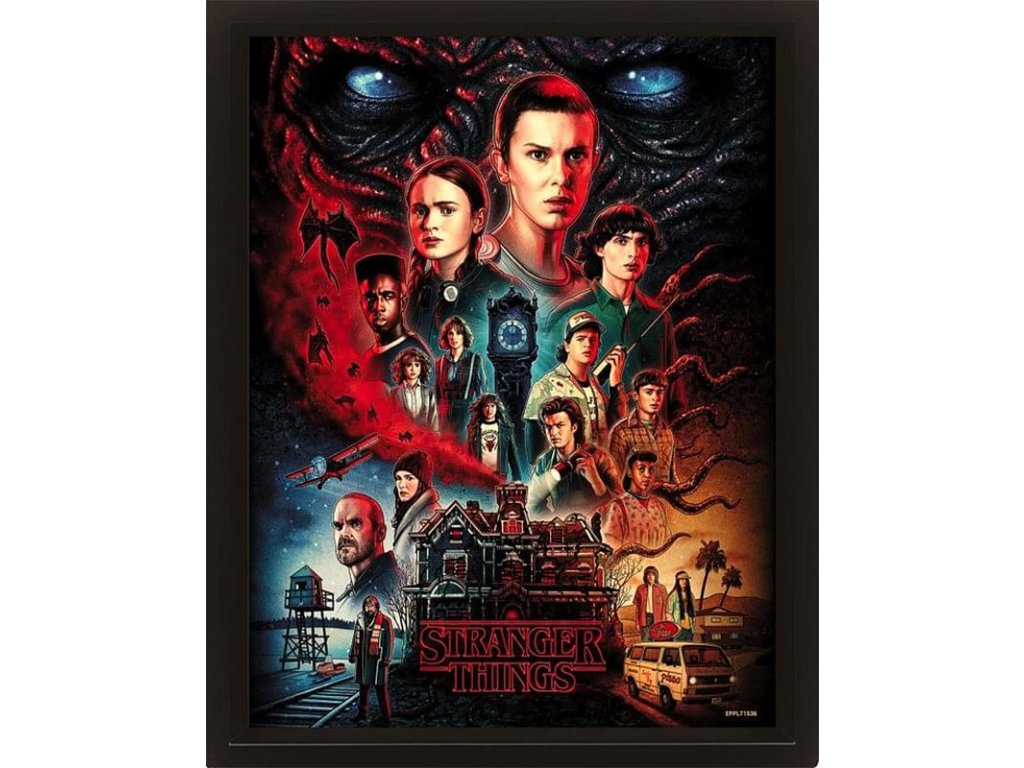 Pěkný obraz na stěnu s hrdiny čtvrté řady hororového seriálu Stranger Things má pohyblivou 3D grafiku a udělá radost všem fanouškům.