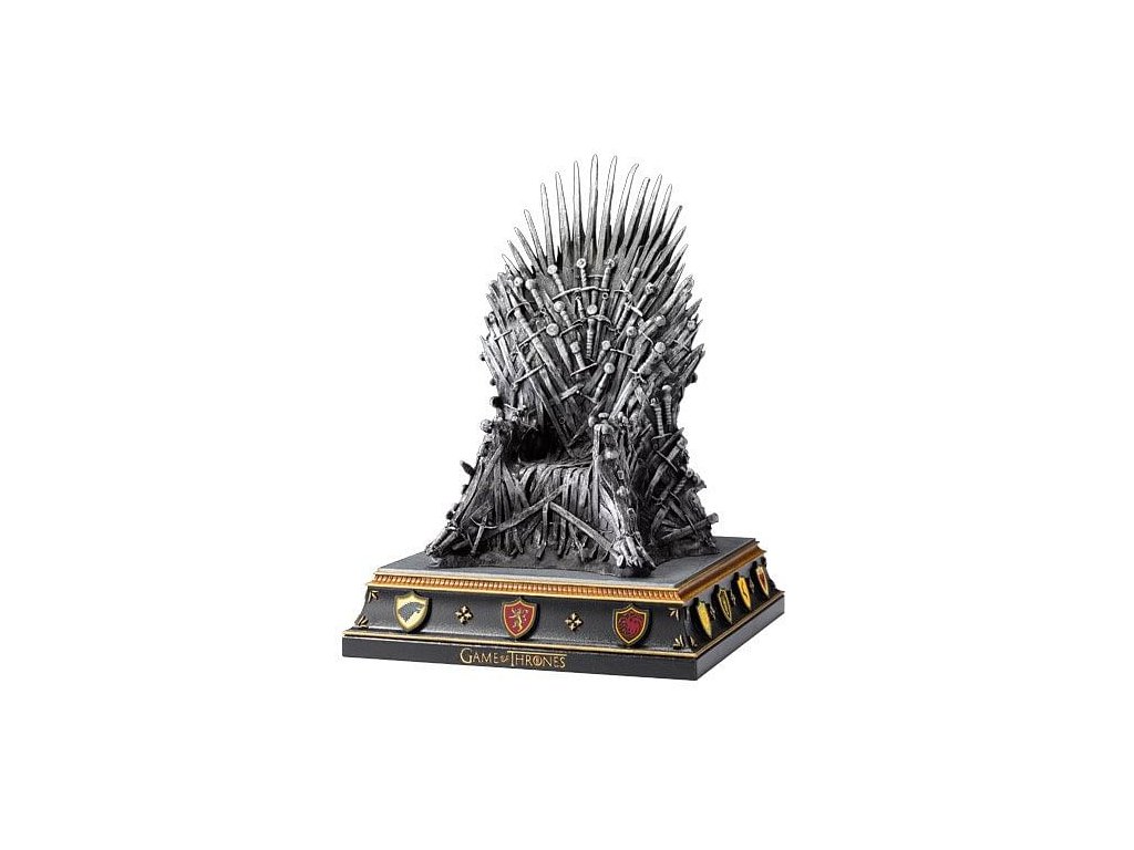 Replika slavného filmového trůnu z fantasy série Game of Thrones. Železný trůn je vysoký 19 cm, ručně malovaný a podél podstavce jsou vyobrazeny erby nejdůležitějších urozených rodů. Působivá zarážka na knihy do Vaší knihovny!