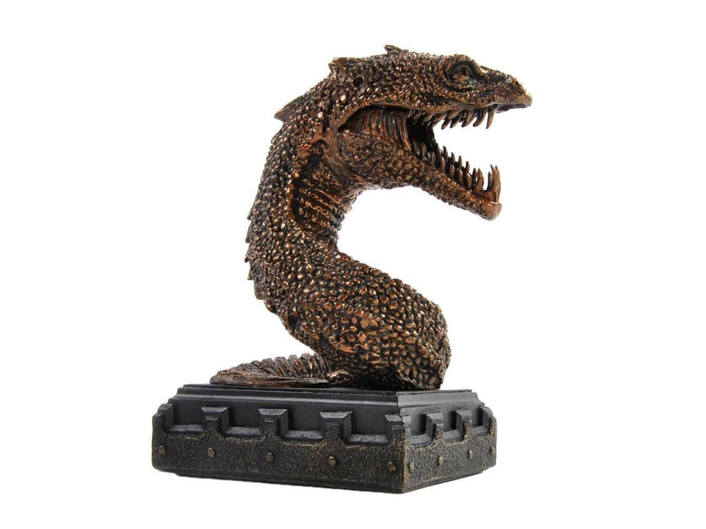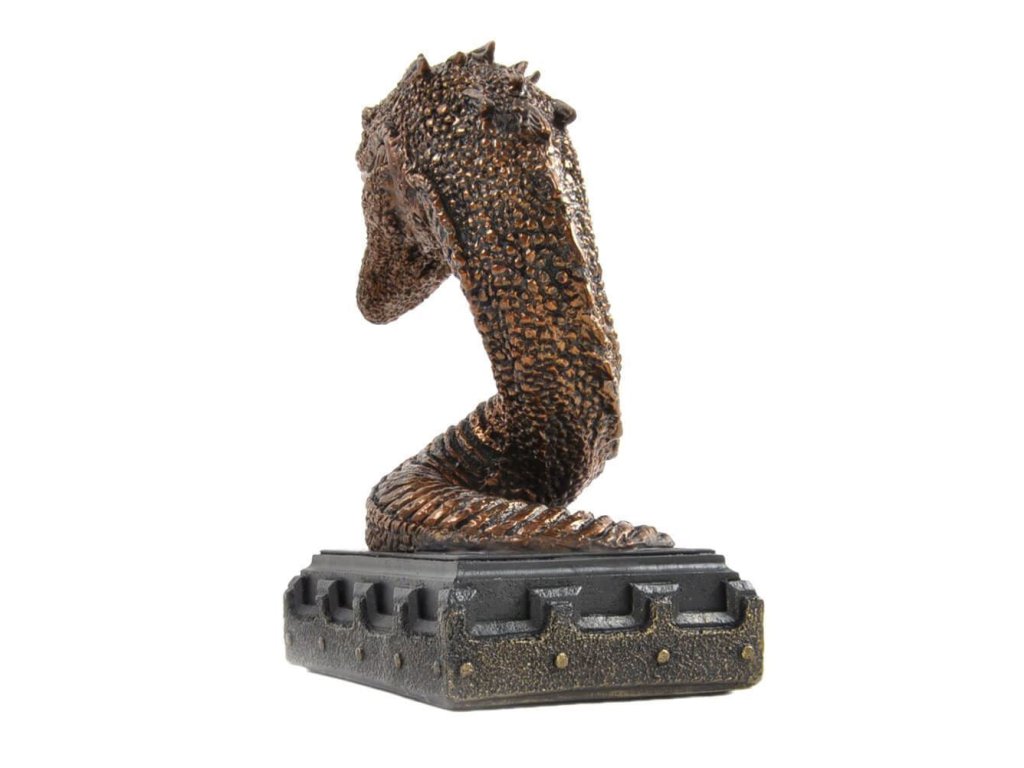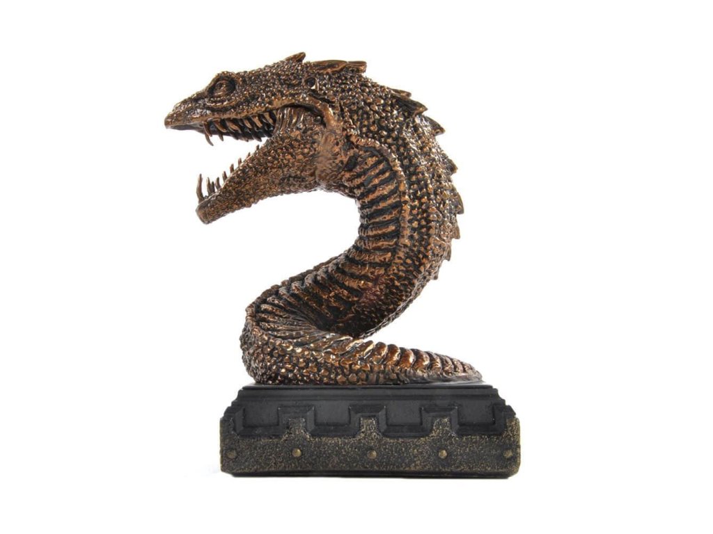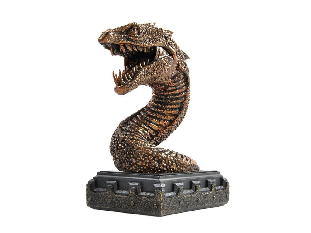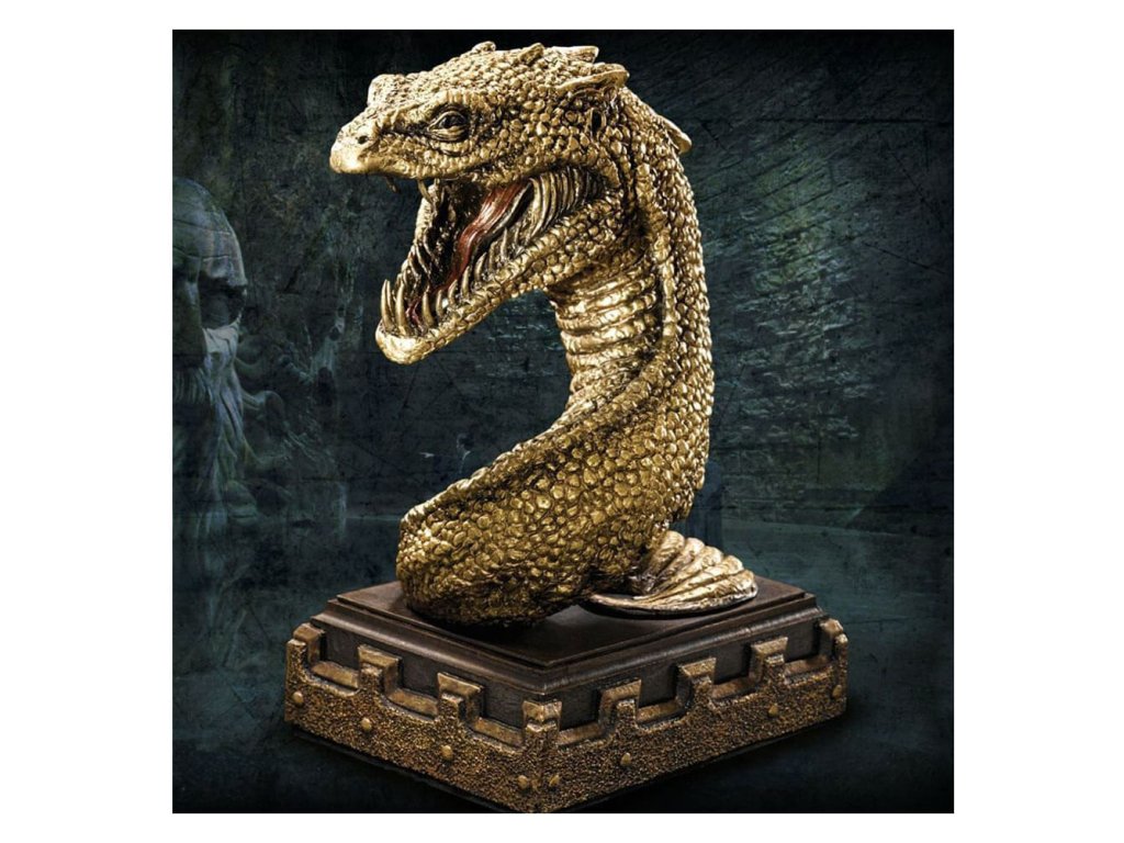 Velmi praktická zarážka na knihy zabrání řetězové reakci padajících knih. Zarážka je ve tvaru hlavy baziliška z filmu Harry Potter: Tajemná komnata. Její výhodou je, že se nemusíte obávat pohledu do jeho očí a ještě Vám ozdobí polici s knihami.