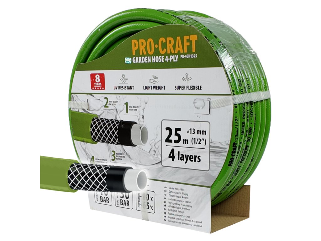 Zahradní hadice Procraft PR-4GH1325 je zkrátka spolehlivým a odolným pomocníkem pro každého zahrádkáře, který ocení dlouhou životnost a bezstarostné používání