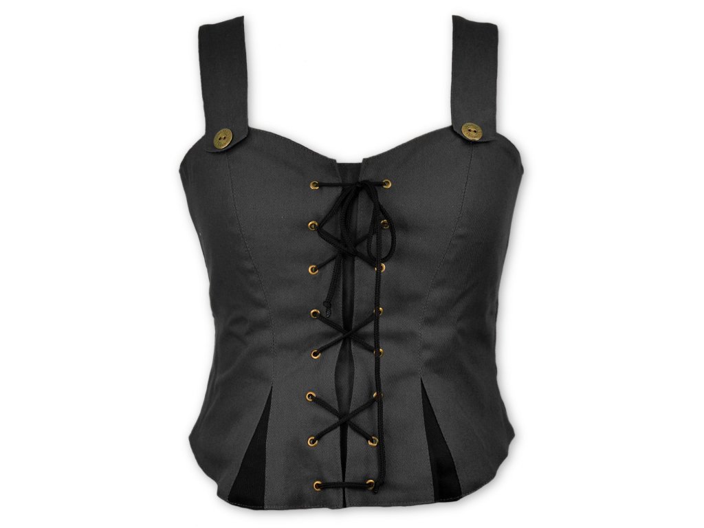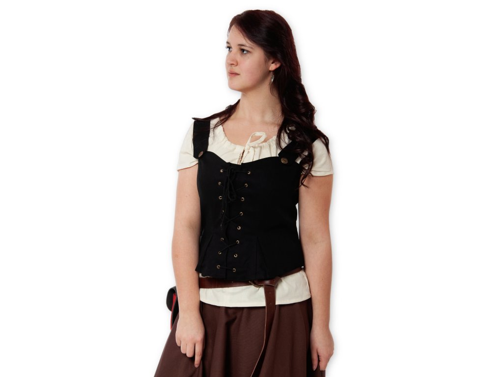 Jednoduchý vypasovaný živůtek opatřený předním i zadním šněrováním. Nezbytný doplněk ke krásnému dekoltu, který dodá dámskému historickému kostýmu šmrnc. S vhodnou blůzou a sukní vytvoříte nádherný komplet. Pro příjemné nošení je živůtek vypodšívkovaný bavlněným plátnem. Více o použitém materiálu se dočtete zde: popis materiálů.