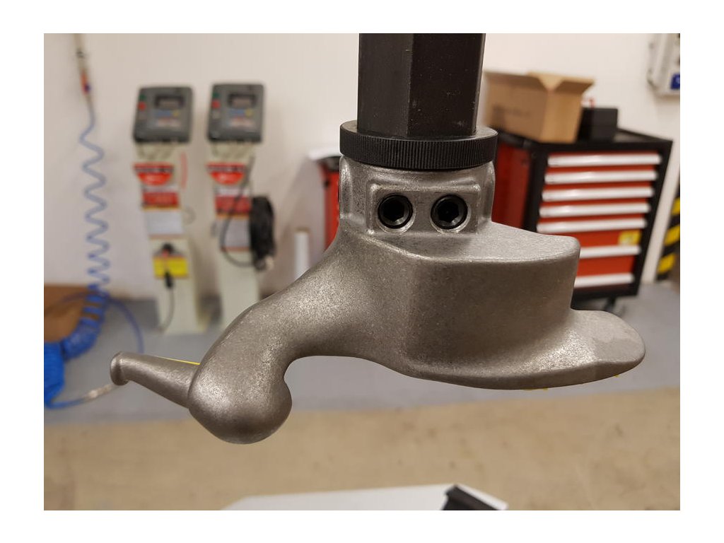 Pro odtlačování patek slouží standardní, konstrukčně dobře propracovaným mechanizmem na boku stroje s úzkou lopatkou, plastovým chráničem a opěrnou gumou. Pro usnadnění manipulace s koly může být stroj na přání vybaven bočním zvedákem kol a na straně odtlačovacího válce podložkou s válečky pro pootáčení kola.