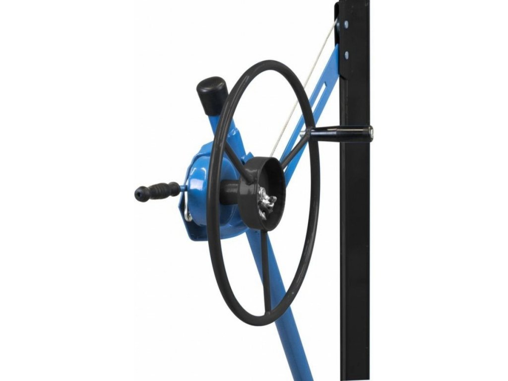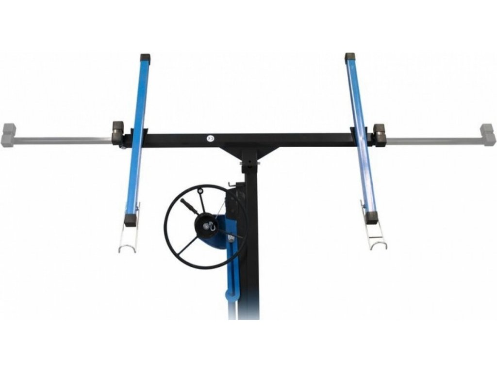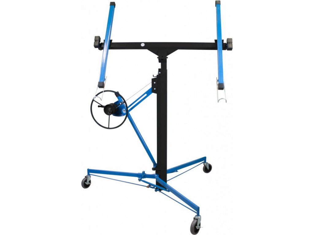 Ruční zvedák sádrokartonu, dřevotřískových a OSB desek. Rozsah zdvihu 120-335 mm, max. zatížení 68 kg. Stabilní trojramenný podstavec, ovládací kolo s aretací.